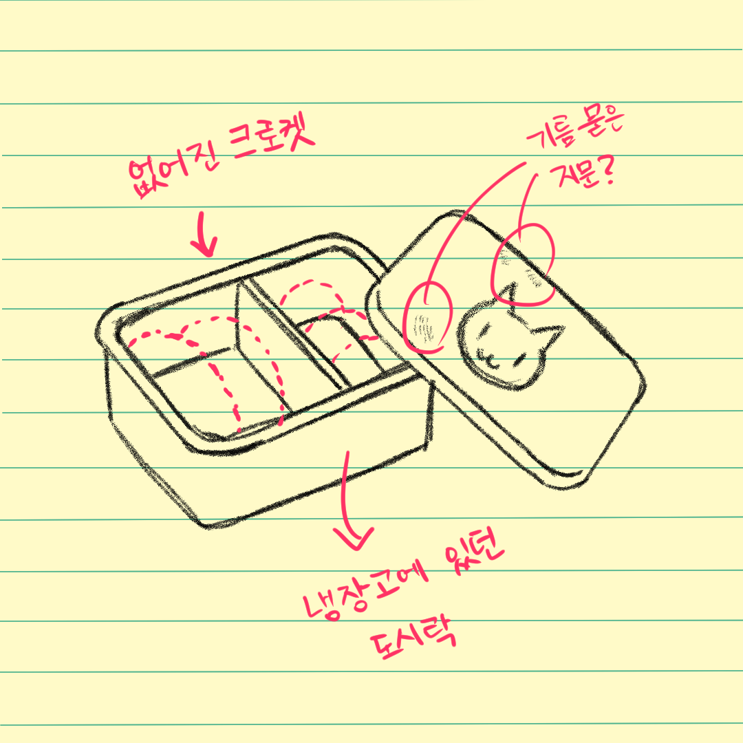 분명히 크로켓을 싸왔는데, 뚜껑을 열자 텅 비어 있었습니다.