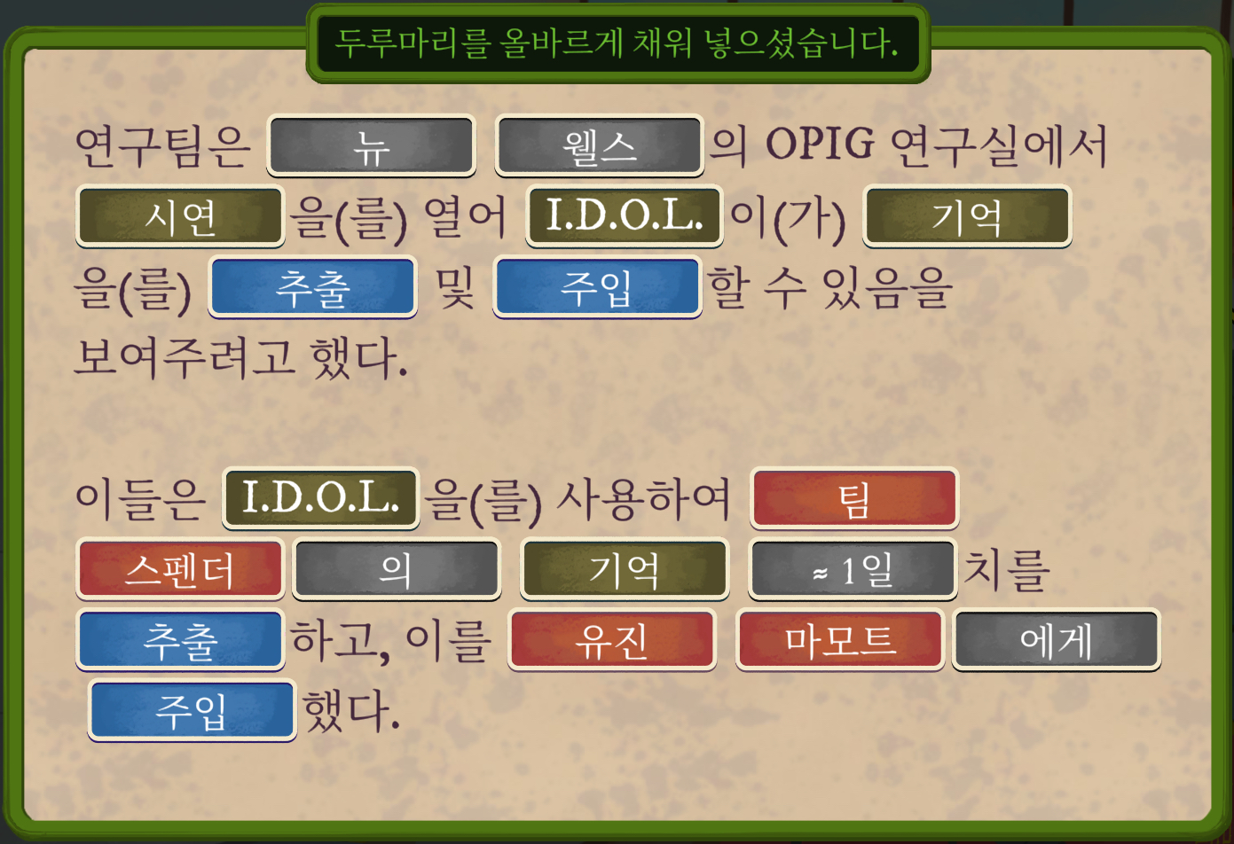 유진은 유용한 정보를 얻고자, IDOL로 팀이 그림을 그린 1분 동안의 기억 대신 팀의 하루의 기억을 통째로 보내게 조정했습니다.