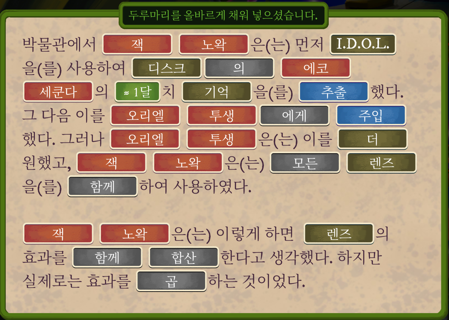 디스크에는 에코 세쿤다의 일생이 기억으로 담겨 있었습니다. 렌즈의 효과가 배가 되면서 IDOL은 이 기억을 모두 오리엘 투생에게 전달한 것이죠. 이로 인해 에코 세쿤다의 정신과 인격이 오리엘의 신체로 옮겨지게 됩니다.