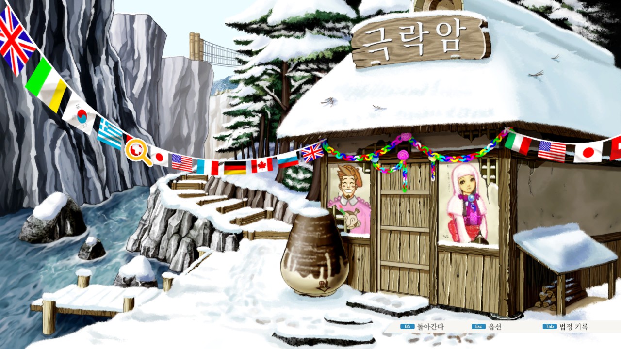 ① 1일차 탐정 후편에서 극락암의 '만국기'를 조사합니다.