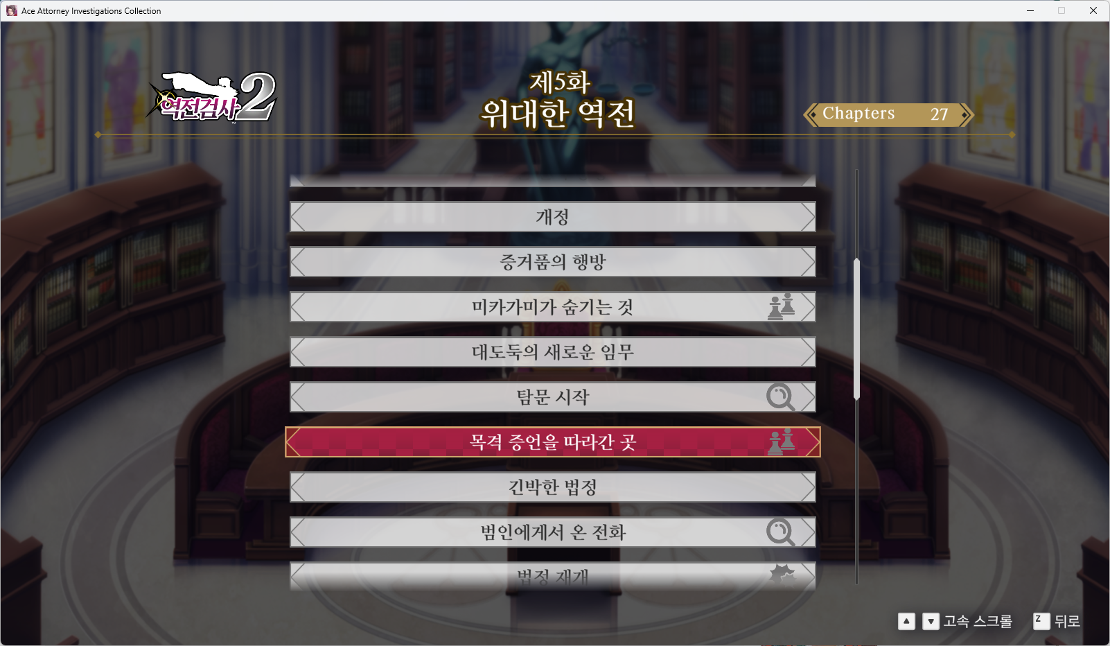 - [역전검사2] - [제5화 위대한 역전] - [목격 증언을 따라간 곳] 챕터로 이동합니다.