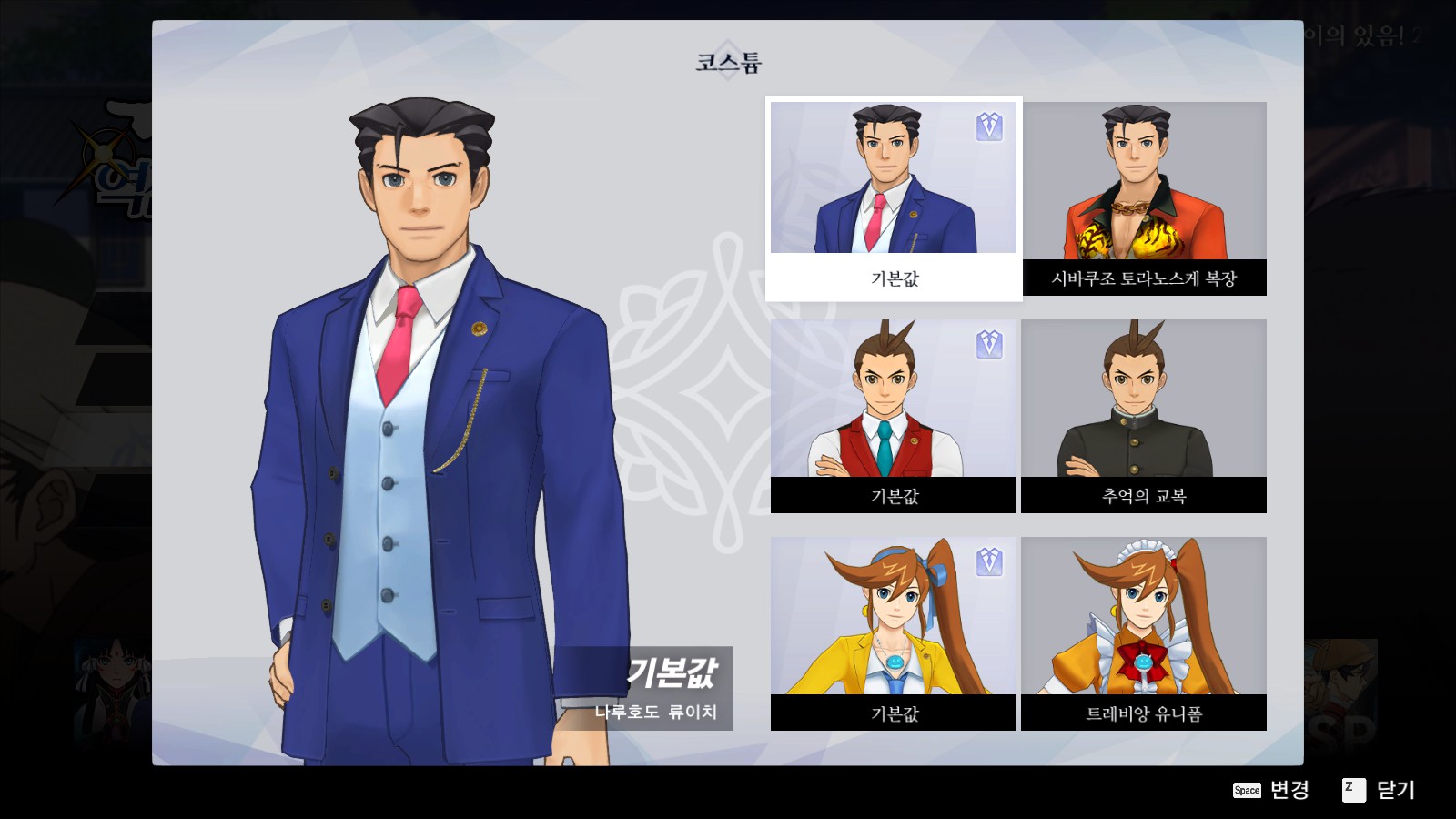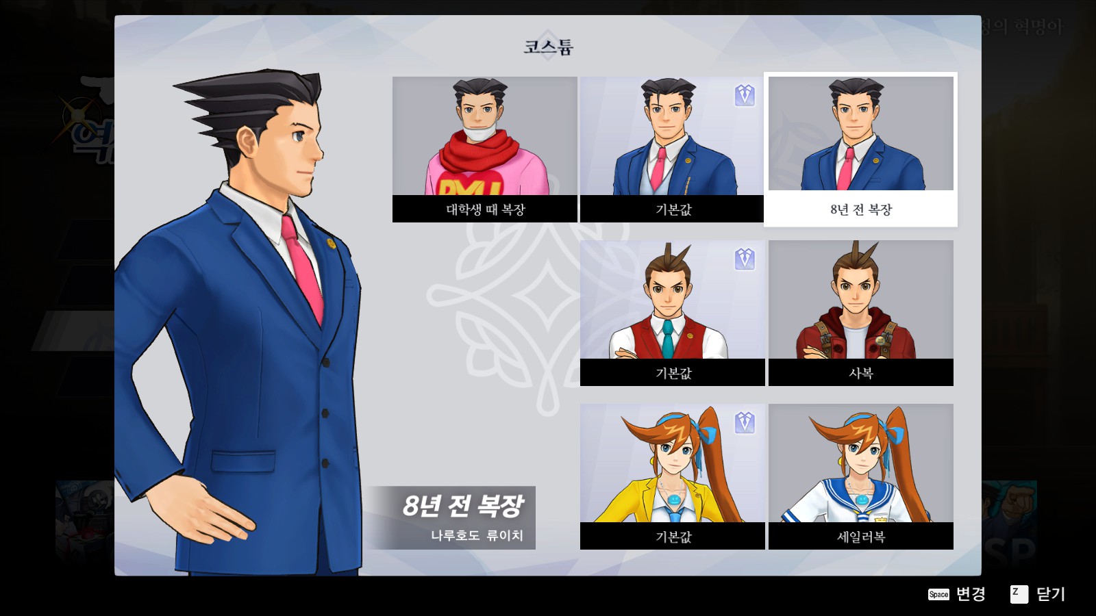 역전재판 5/6 중 하나 의상을 바꿔 입고 게임을 플레이한다