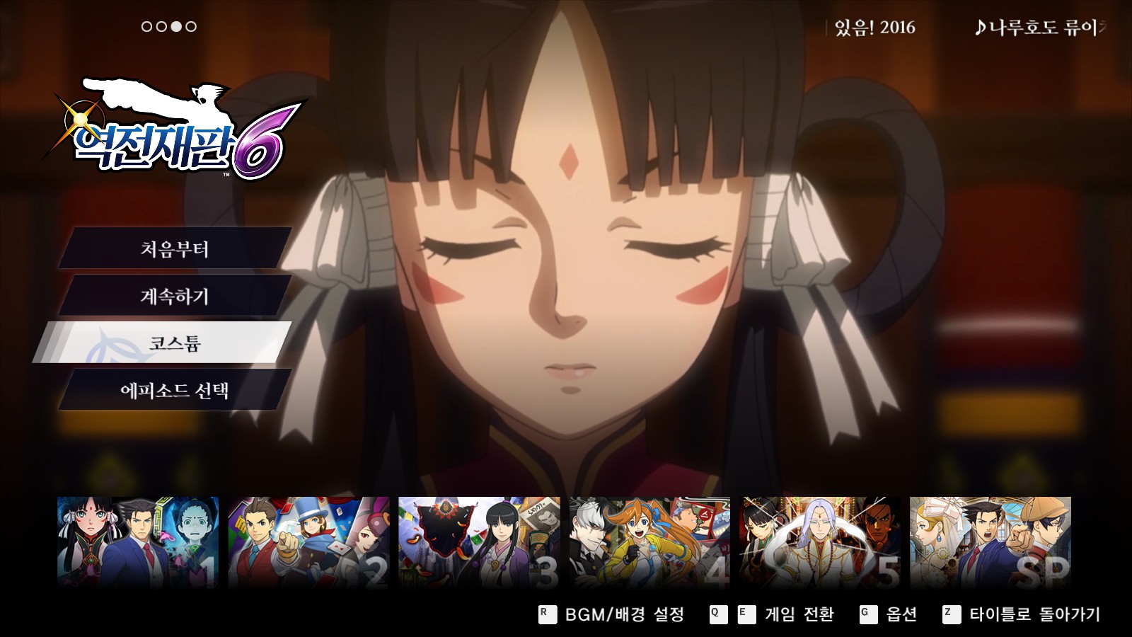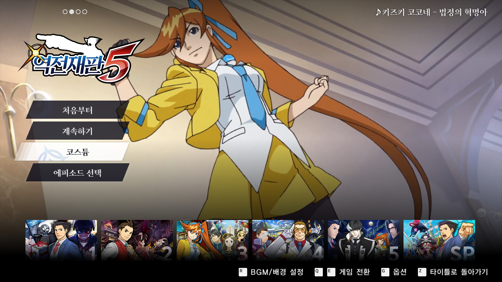 1. 역전재판 5 혹은 6 화면에서 [코스튬 메뉴]를 선택합니다.