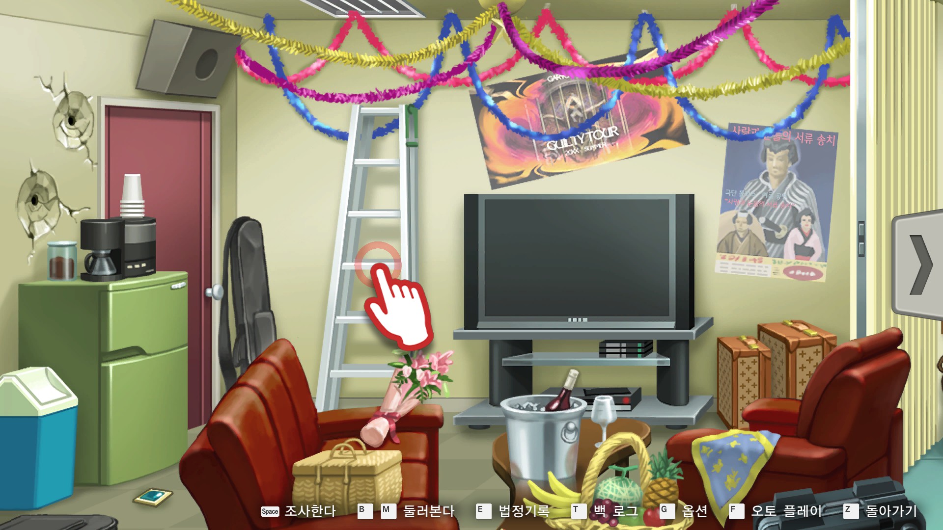 - 역전재판4 제3화 / 탐정 1일차에 아프로미아의 대기실에서 접사다리를 조사한다.