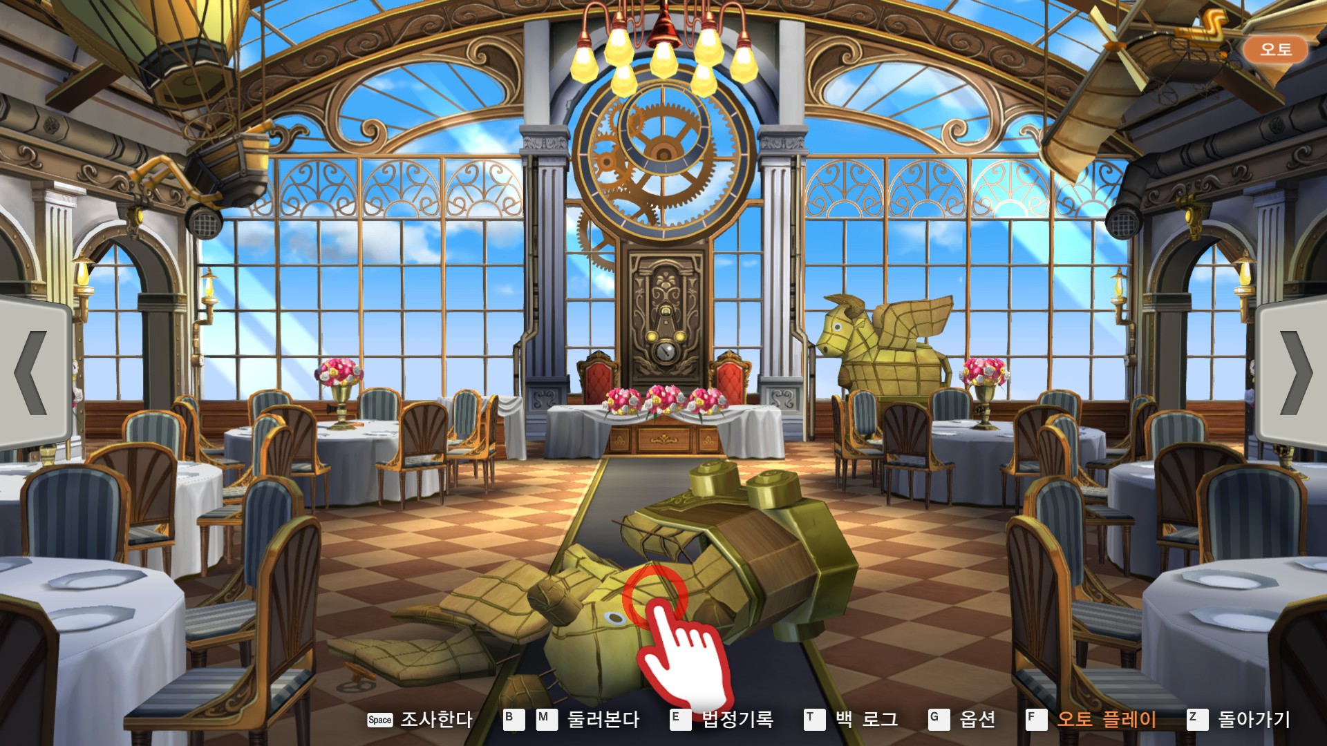 7. 역전재판6 > 특별편 > 탐정 1일차 > 피로연장 조사 챕터로 이동합니다.