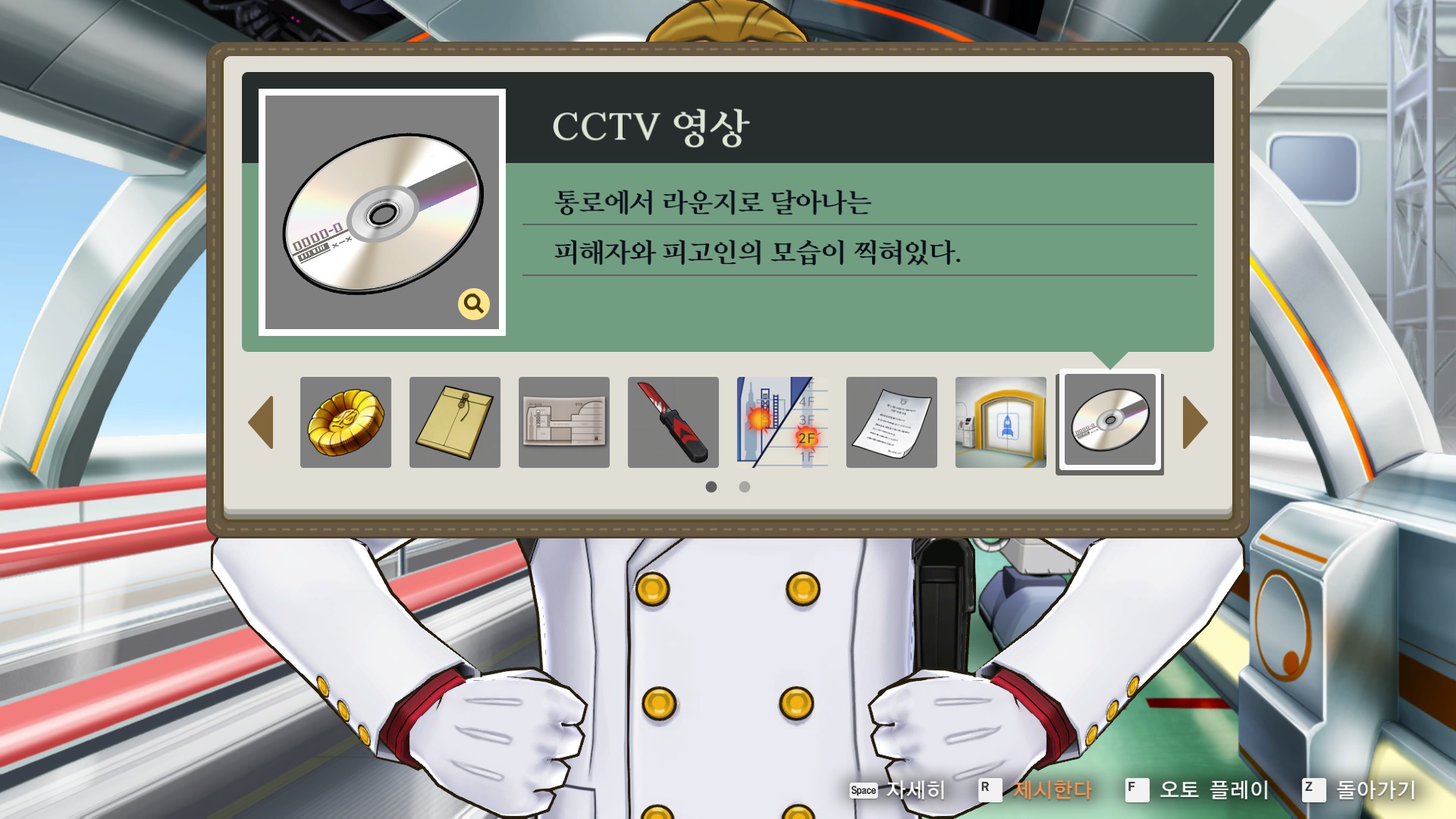 2. 반 고조에게 CCTV 영상을 제시합니다. 증거물이 갱신되면서 대화가 연장되고 사이코록이 나타납니다.