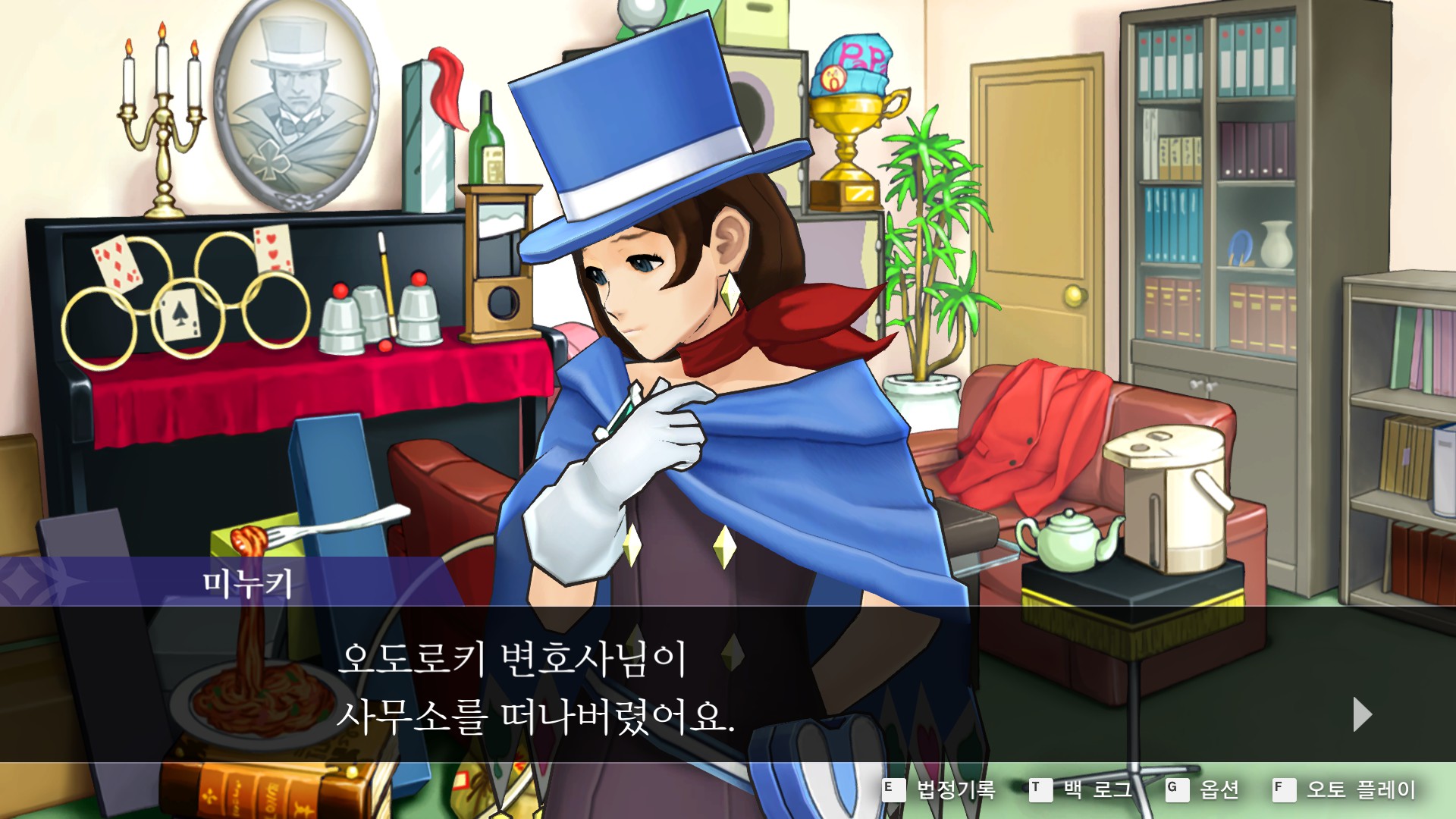 1. 역전재판5 > 제5화 > 탐정1일차 시작 챕터를 선택합니다.