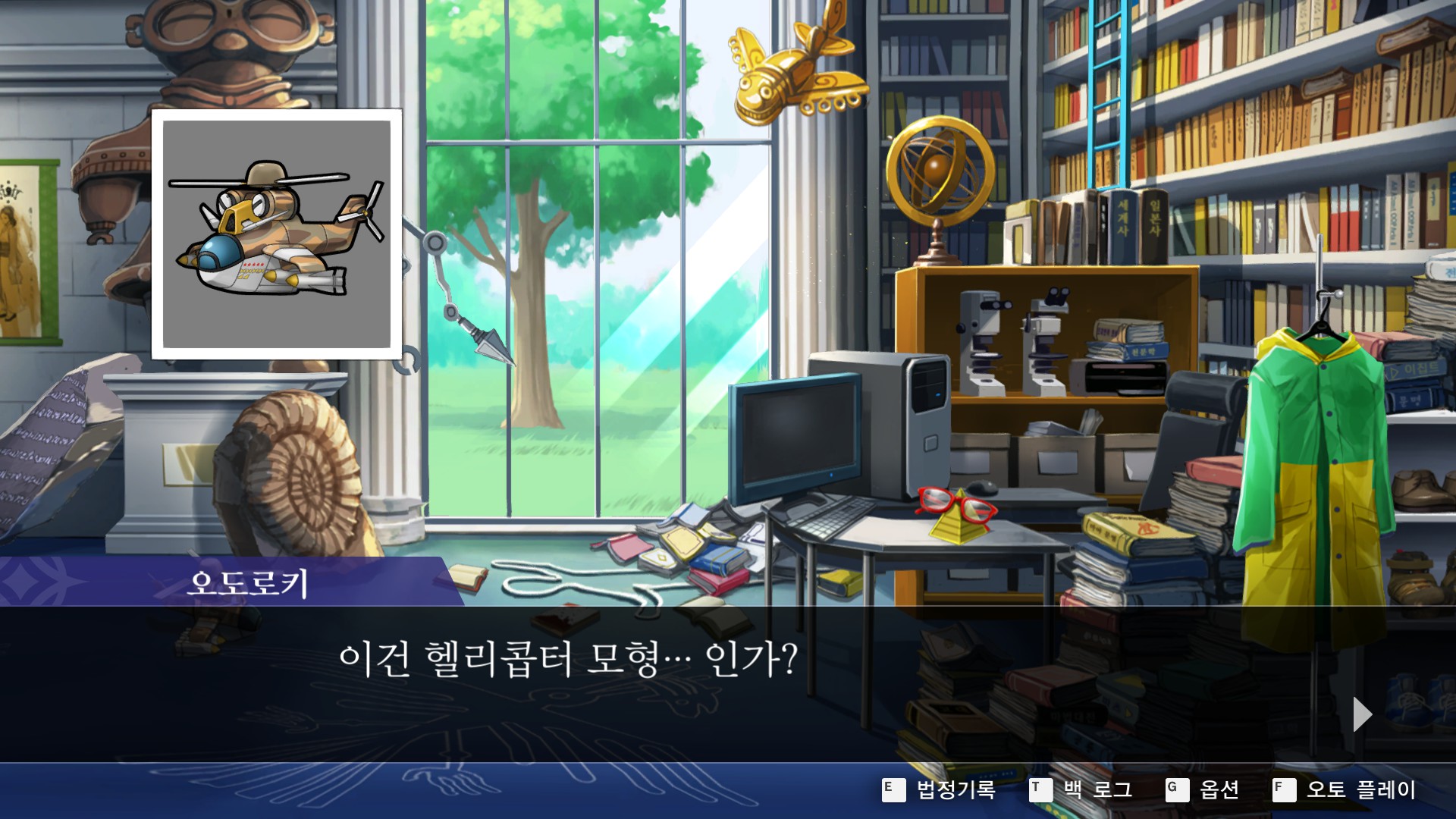 박사의 연구실에서 집에 떨어져 있는 비행기를 조사하면 자연스럽게 이벤트로 넘어가며 중사와 대화하게 됩니다.