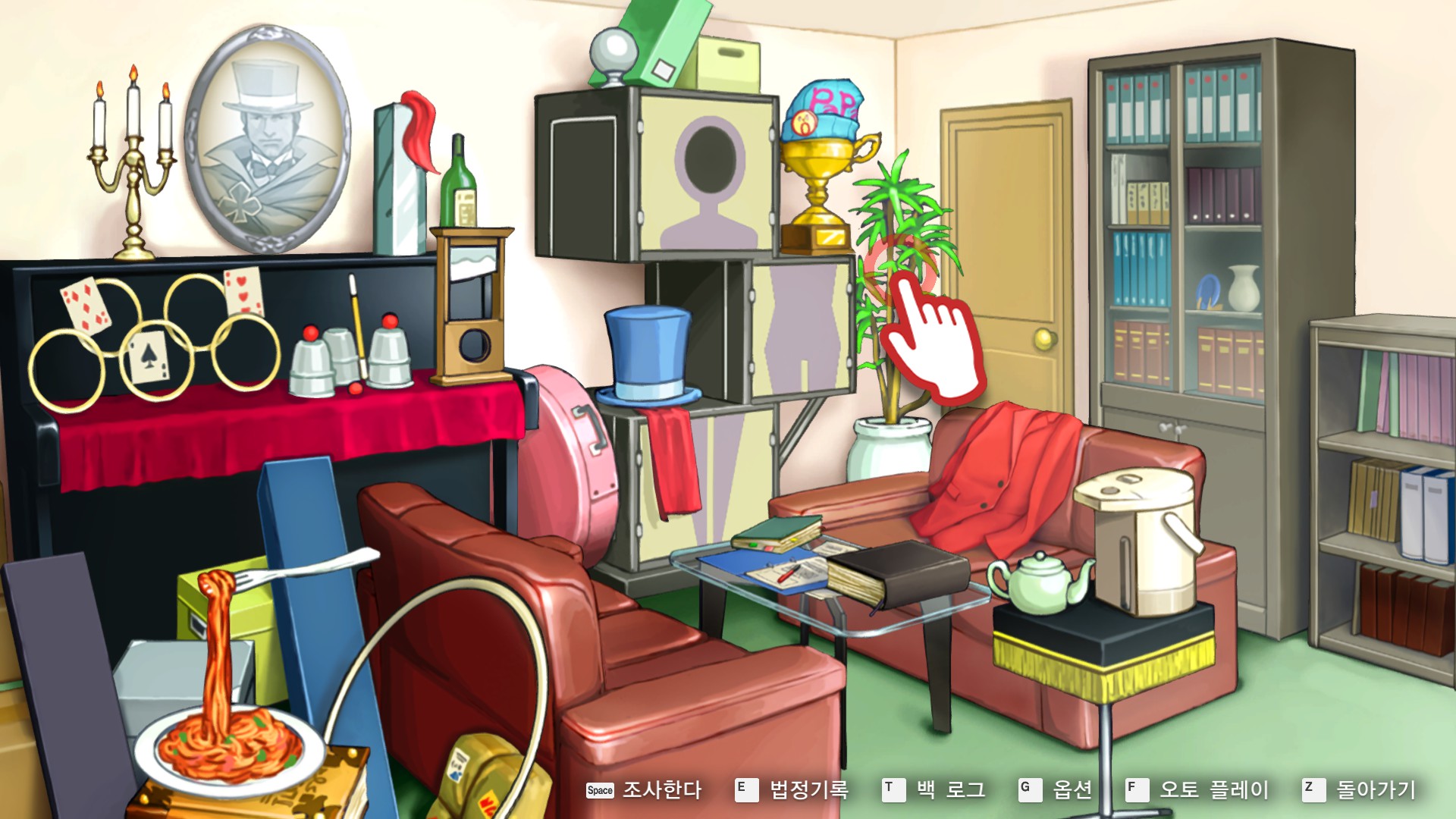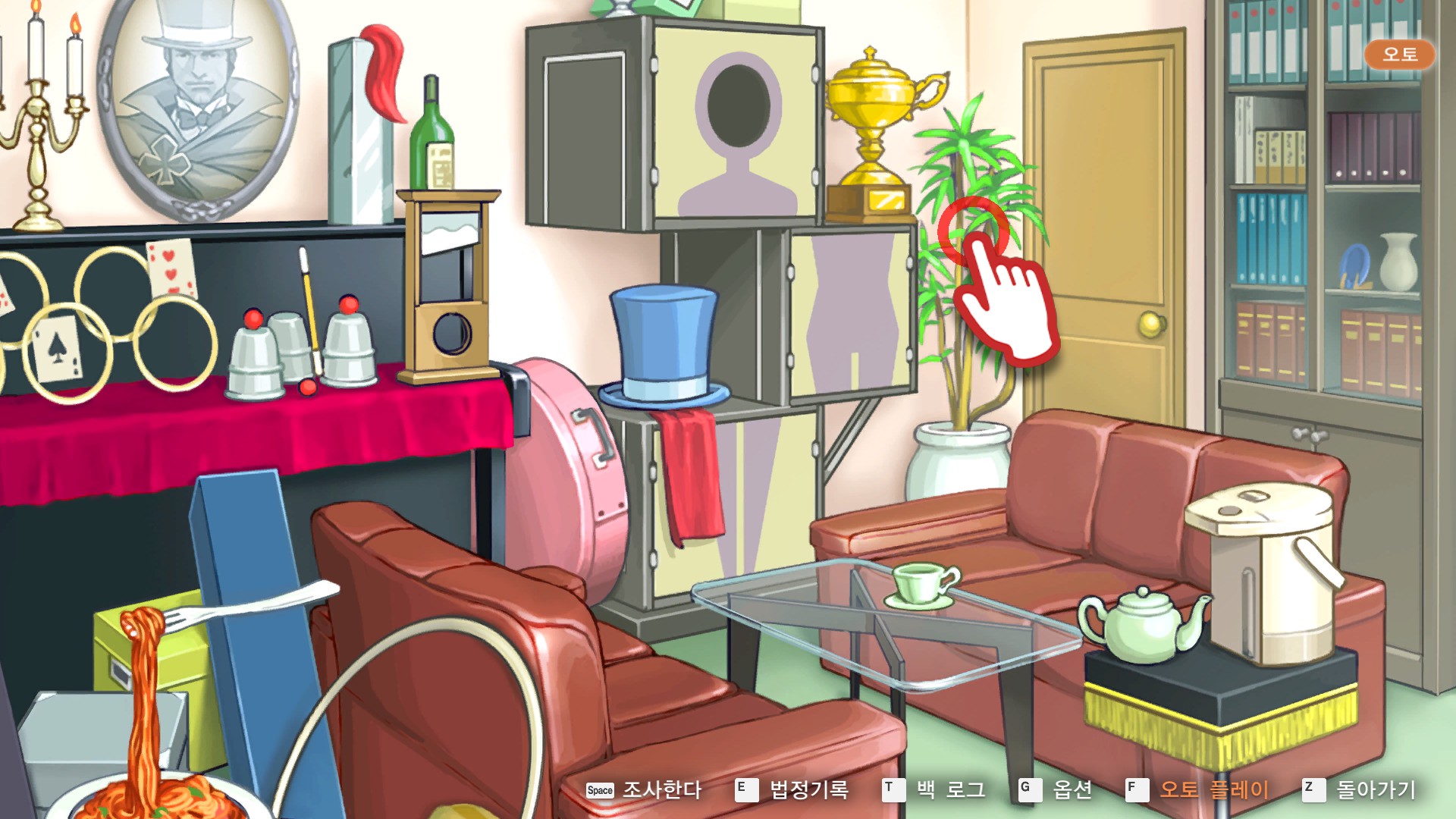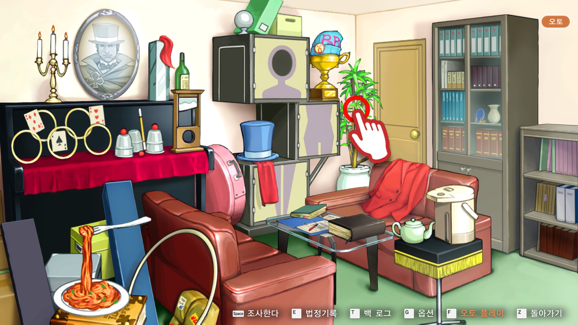 7. 역전재판6 > 제5화 > 탐정 1일차 시작 챕터로 이동해 관엽식물을 조사합니다.