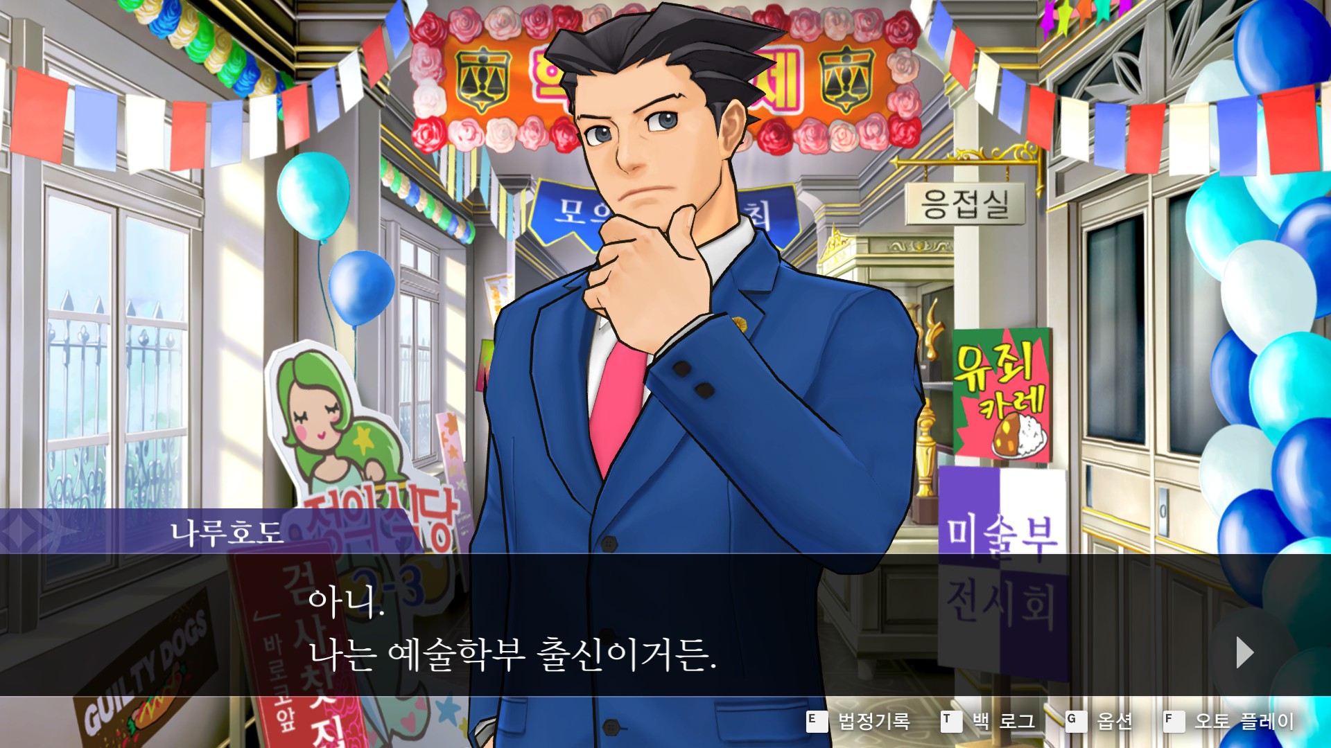 1. 역전재판5 > 제3화 > 탐정1일차 > 교내 탐문 챕터를 선택합니다.