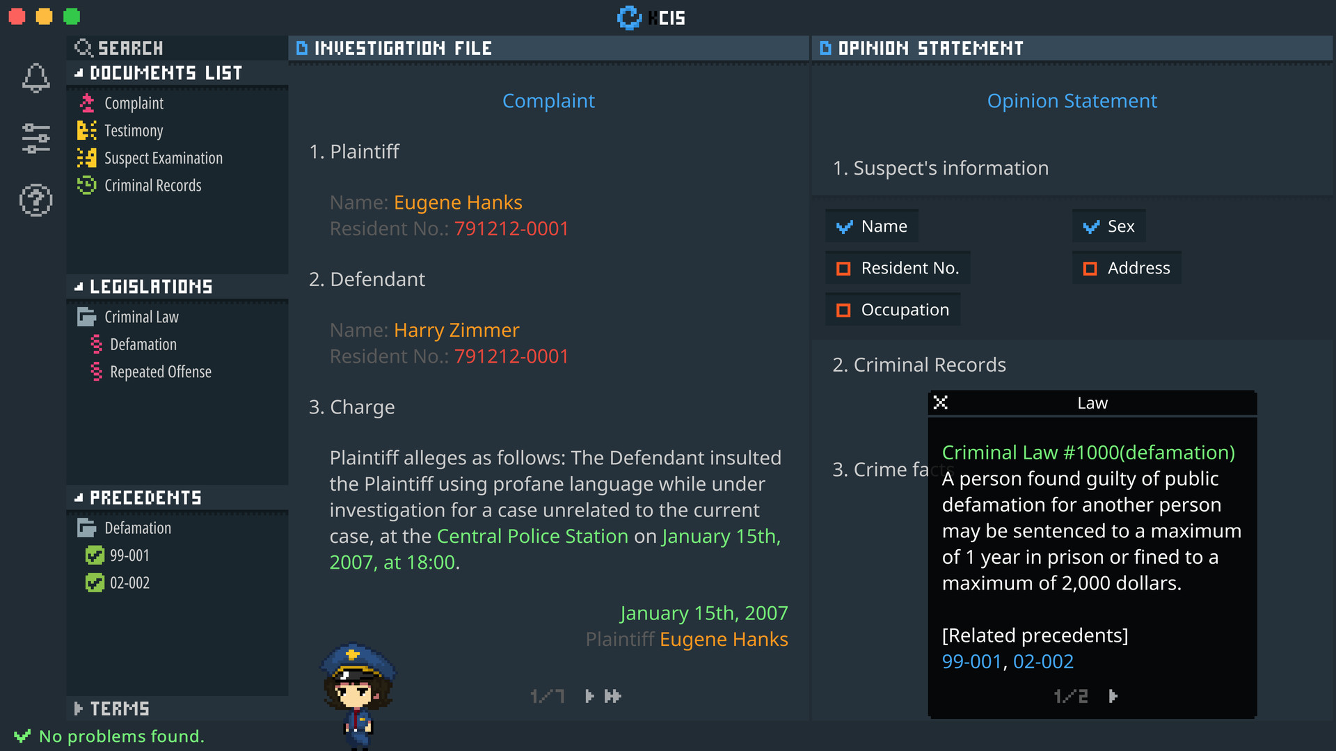 '리갈던전'은 경찰이 수사 서류를 작성하고 제출하는 식의 게임입니다. 서류를 제출하는 방향에 따라 가해자와 피해자가 예상치 못한 방향으로 바뀌기도 하고, 이에 따라 서류를 작성하는 플레이어의 운명도 결정됩니다. 마치 '페이퍼 플리즈'처럼 게임에서 일을 하는 느낌을 주기도 하고, 법정 용어나 힌트가 그다지 친절하지 않아 접근하기 어려운 감이 있습니다. 심지어 내용도 너무 쓰디쓴 현실이다보니 호불호가 갈리는 면도 있습니다.