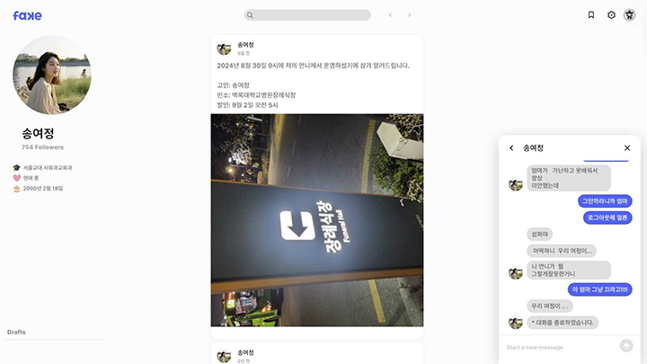 페이크북은 소셜 미디어 플랫폼을 그대로 옮겨놓은 듯한 독특한 인터페이스가 특징입니다. 깔끔하고 모던한 디자인으로, 실제 SNS를 사용하는 듯한 몰입감을 제공합니다. 기술적으로는 낮은 사양의 PC에서도 원활히 구동되어 접근성이 높습니다.