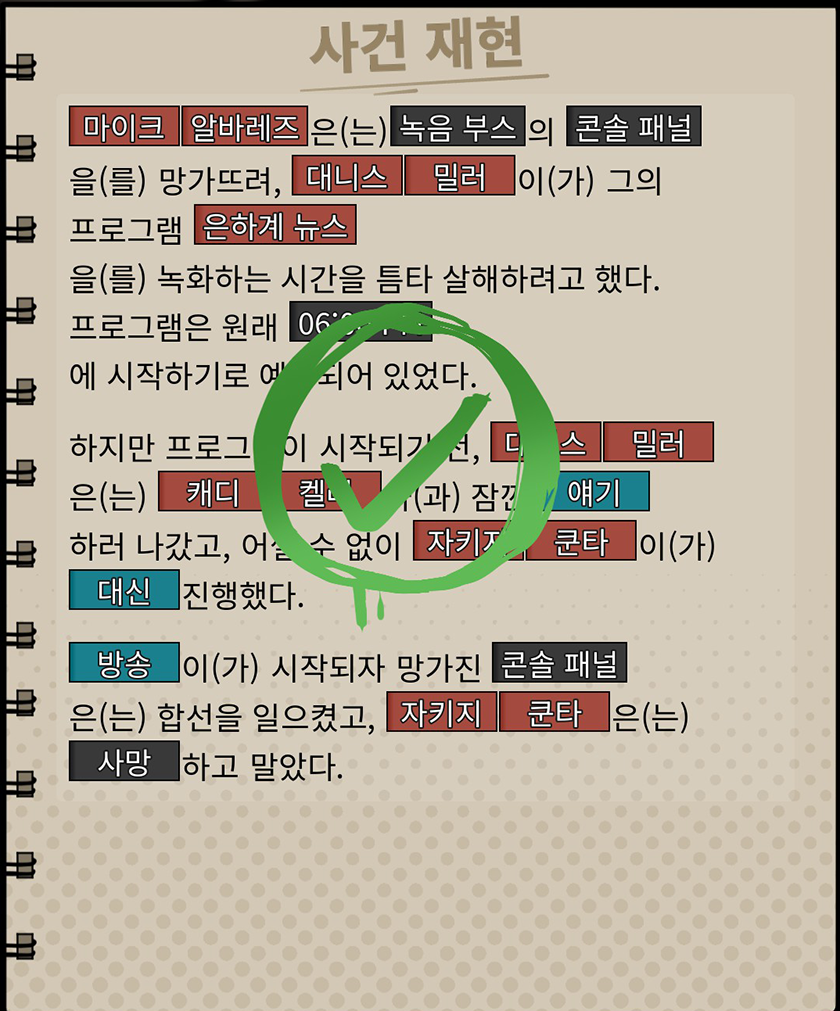 | 은폐된 살인의 진실들 사건 키워드 공략 정답지 2 (0) | 2026.02.11 |