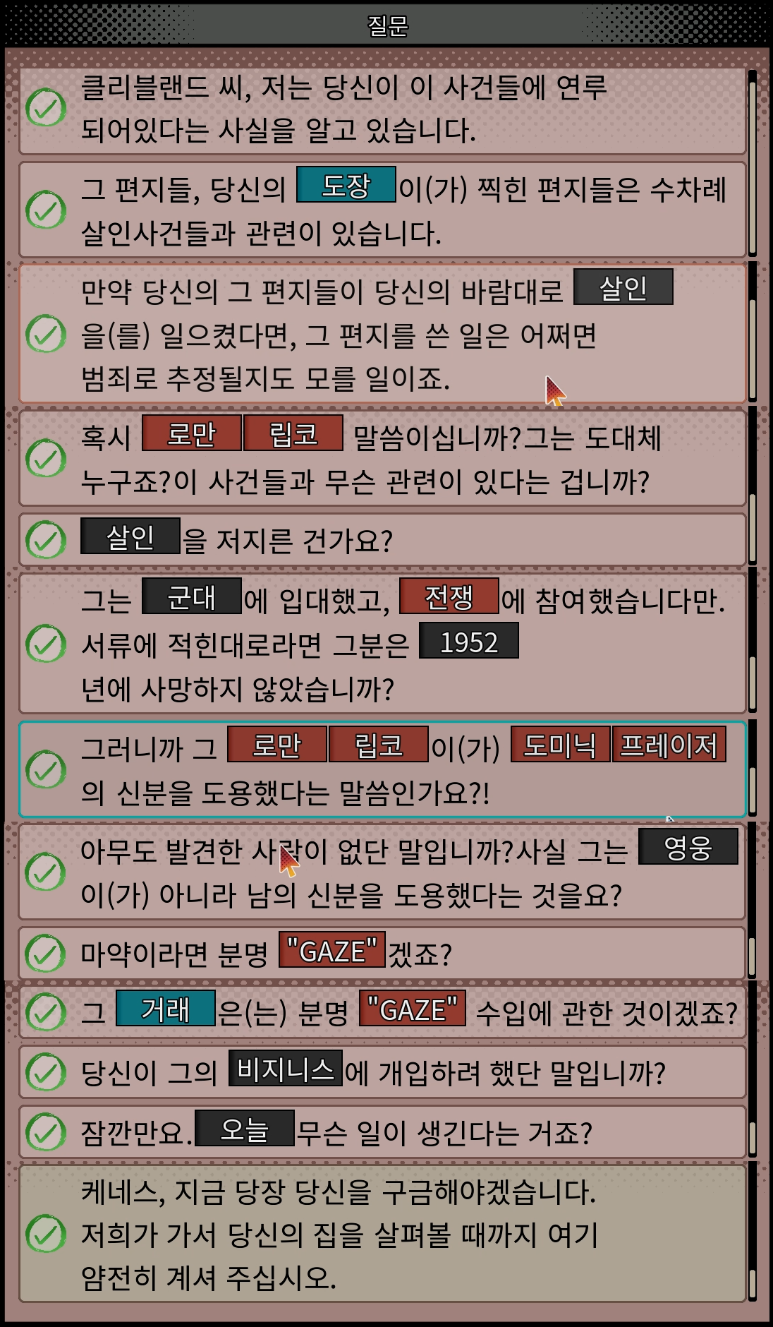 | 은폐된 살인의 진실들 사건 키워드 공략 정답지 1 (0) | 2026.02.10 |