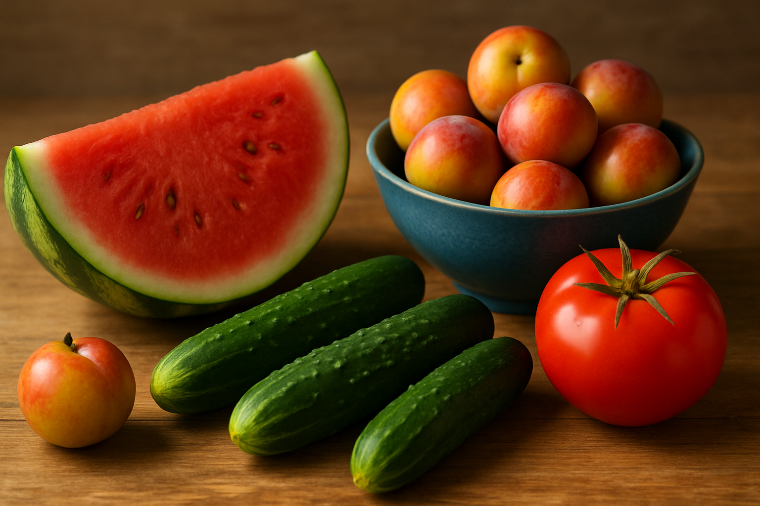 수분과 전해질을 충분히 섭취하고, 제철 음식을 찾아 먹고, 더위에 많이 노출되지 않도록 주의를 하더라도 완벽하게 더위를 피하는 것은 아마 어려울 것입니다. 너무 심각한 증상이 나타난다면 두말 할 것도 없이 병원에 가는 것이 제일 좋습니다. 이런 더위에 도움이 되는 제철 음식에는 수박, 오이, 매실, 토마토 등이 있습니다. 여름철 건강은 한순간의 방심에서 무너질 수 있습니다. 오늘도 시원한 수분 한 잔과 함께, 건강하게 여름을 보내시기 바랍니다.