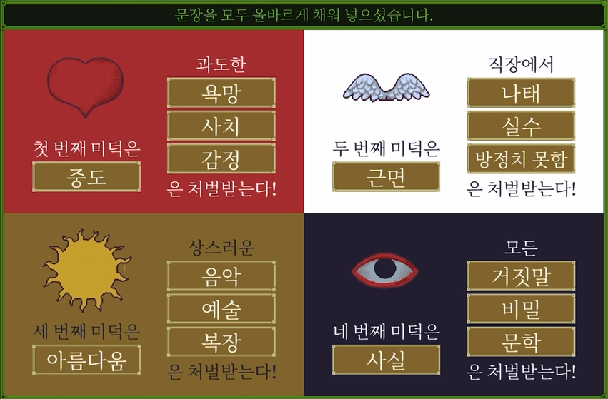 질서당이 정권을 잡고 '미덕의 네 가지 격언'을 강제했습니다.