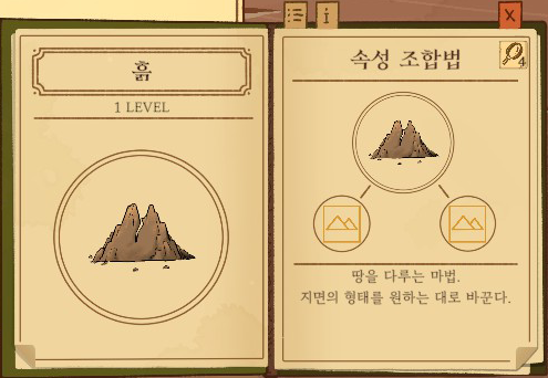 흙=땅+땅 강화없음: 땅을 단단하게 1단계 강화: 흙벽 2단계 강화: 언덕 |