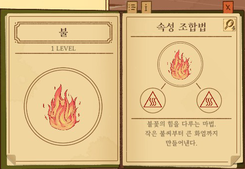 불=불+불 강화없음: 불꽃 1단계 강화: 불길 2단계 강화: 화염구 |