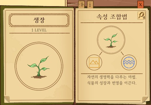 생장=땅+물 강화없음: 꽃을 피움 1단계 강화: 나무를 키움 2단계 강화: 숲을 키움 |