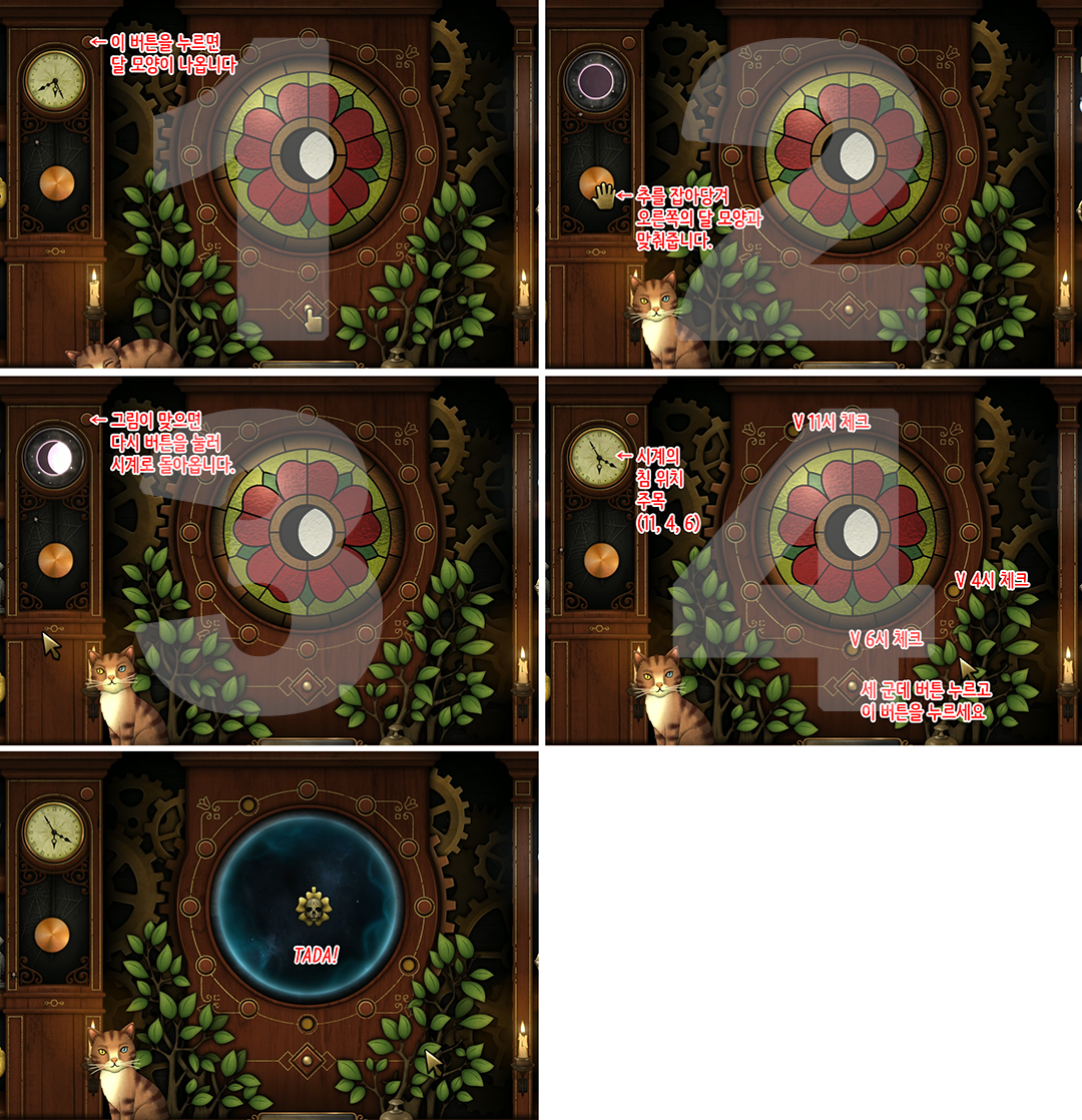 - 1. 시계의 버튼을 눌러 시계 뒤의 달 모양을 확인합니다.