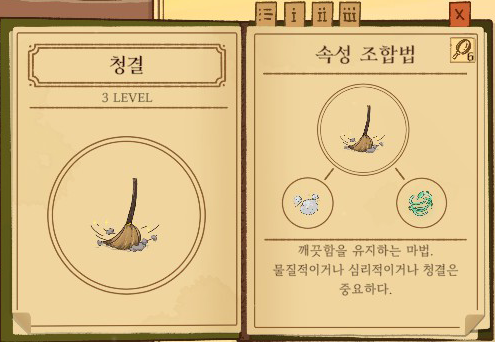 청결 = 먼지 + 바람 강화없음: 얼룩을 지움 1단계 강화: 악취를 제거 2단계 강화: 오염을 정화 |
