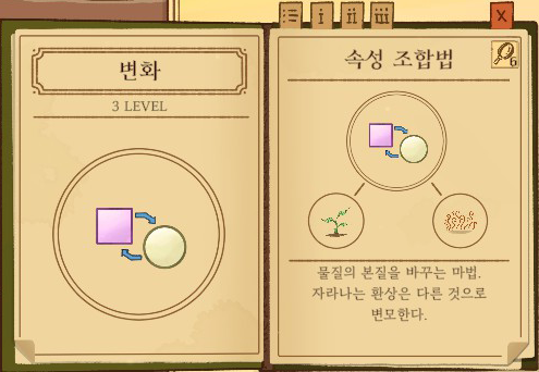 변화 = 생장 + 아지랑이 강화없음: 물체의 색깔 1단계 강화: 물체의 형태 2단계 강화: 물체의 성질 |