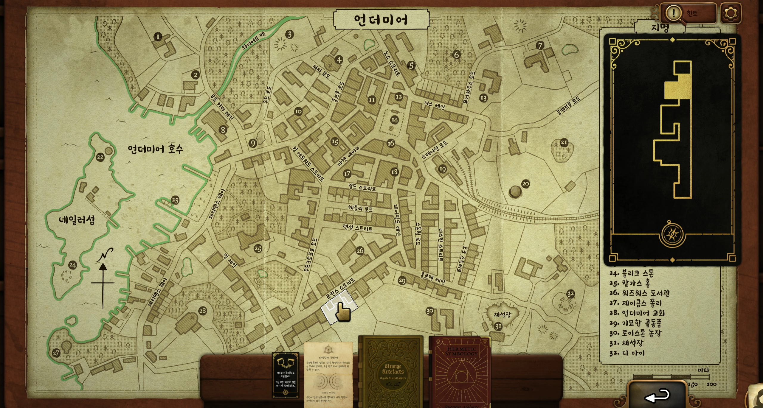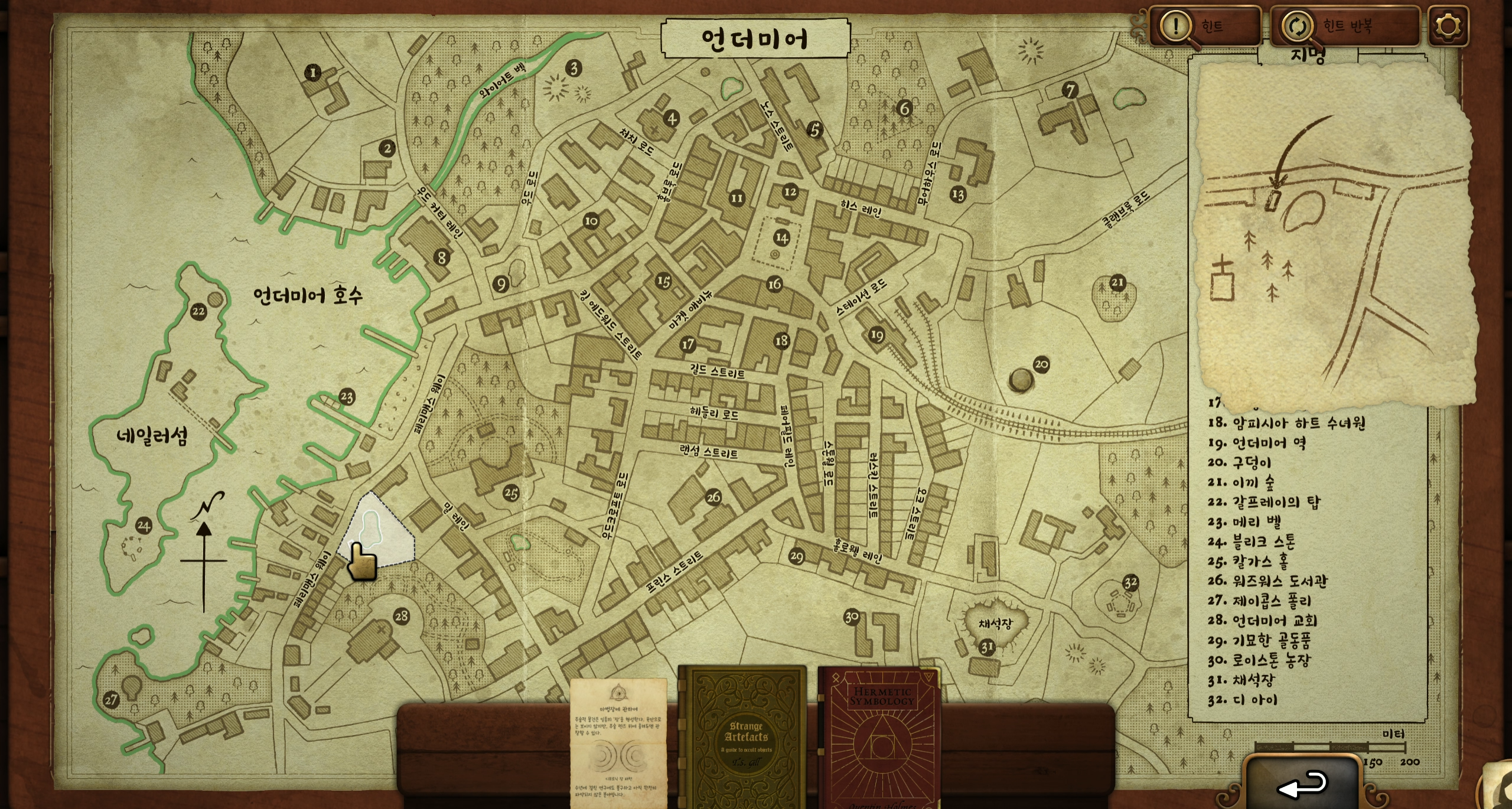 골동품의 단서가 든 지도를 줍니다. 지도의 단서는 교회, 숲, 그리고 웅덩이입니다. 언더미어 교회 근처 웅덩이 옆에 작은 건물이 있습니다. 그 곳에서 골동품을 얻을 수 있습니다.