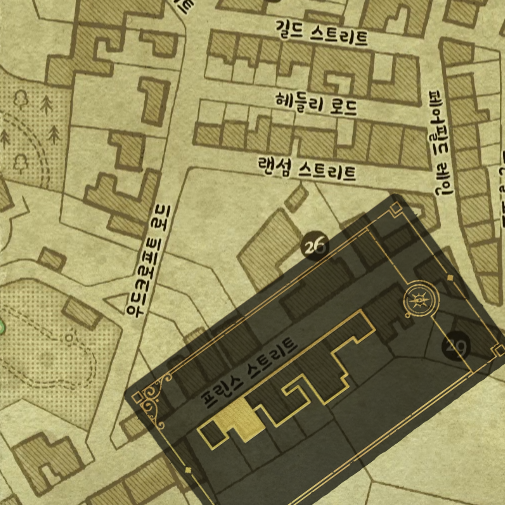 특정 거리를 그린 카드가 나옵니다. 카드를 시계 반대 방향으로 돌려 보면 프린스 스트리트와 유사한 걸 알 수 있습니다. 그 중 금색으로 칠해진 부분과 겹치는 곳을 클릭하면 골동품을 얻을 수 있습니다.