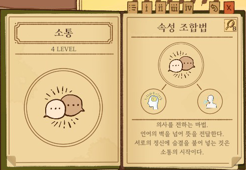 소통 = 정신+호흡 강화없음: 다른 언어를 통역 1단계 강화: 동물과 대화 2단계 강화: 정령과 대화 |