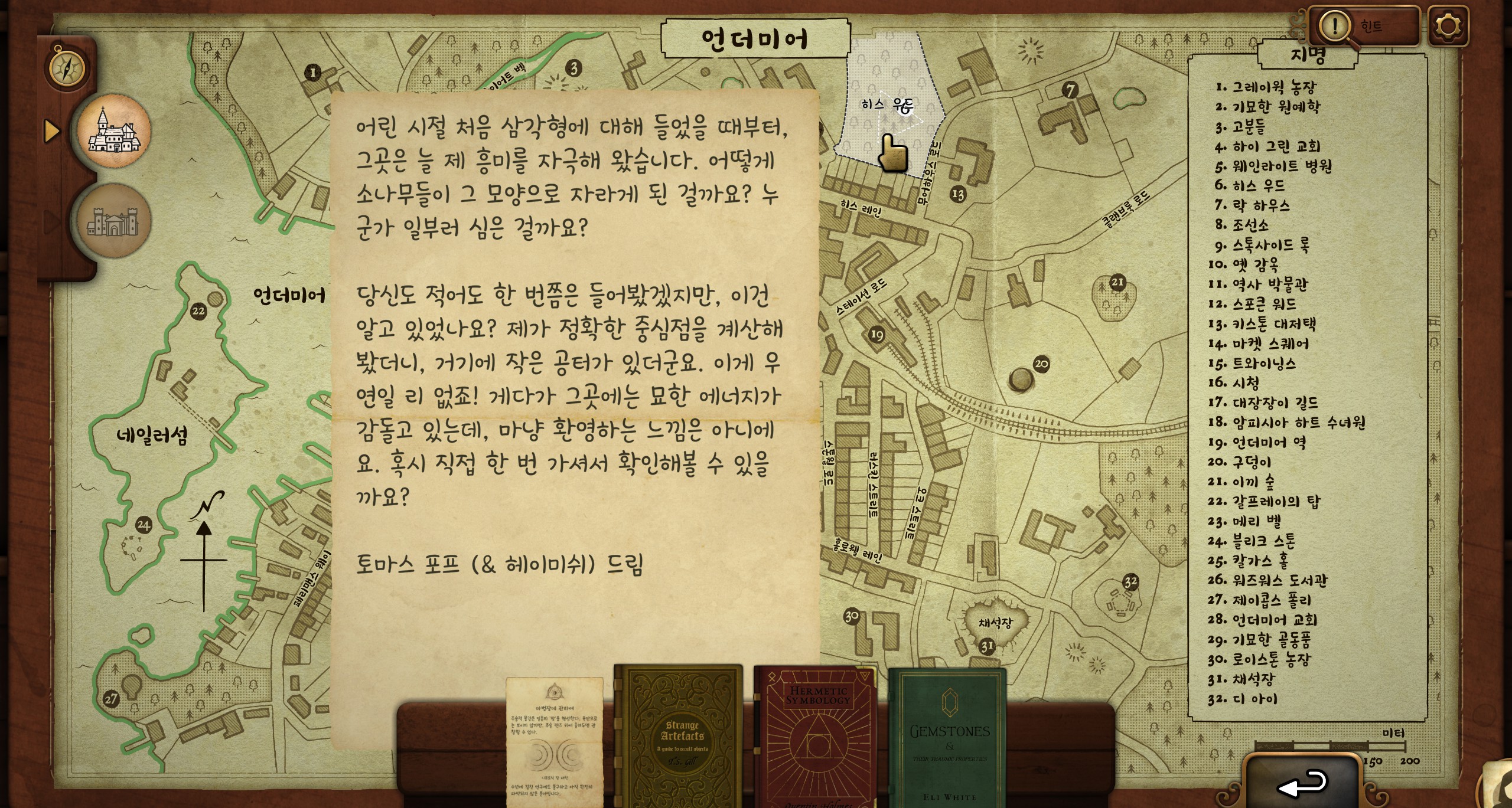 편지를 가지고 옵니다. 이번에는 언더미어로 탐험해 봅니다. 히스우드 가운데에 삼각형이 있습니다.