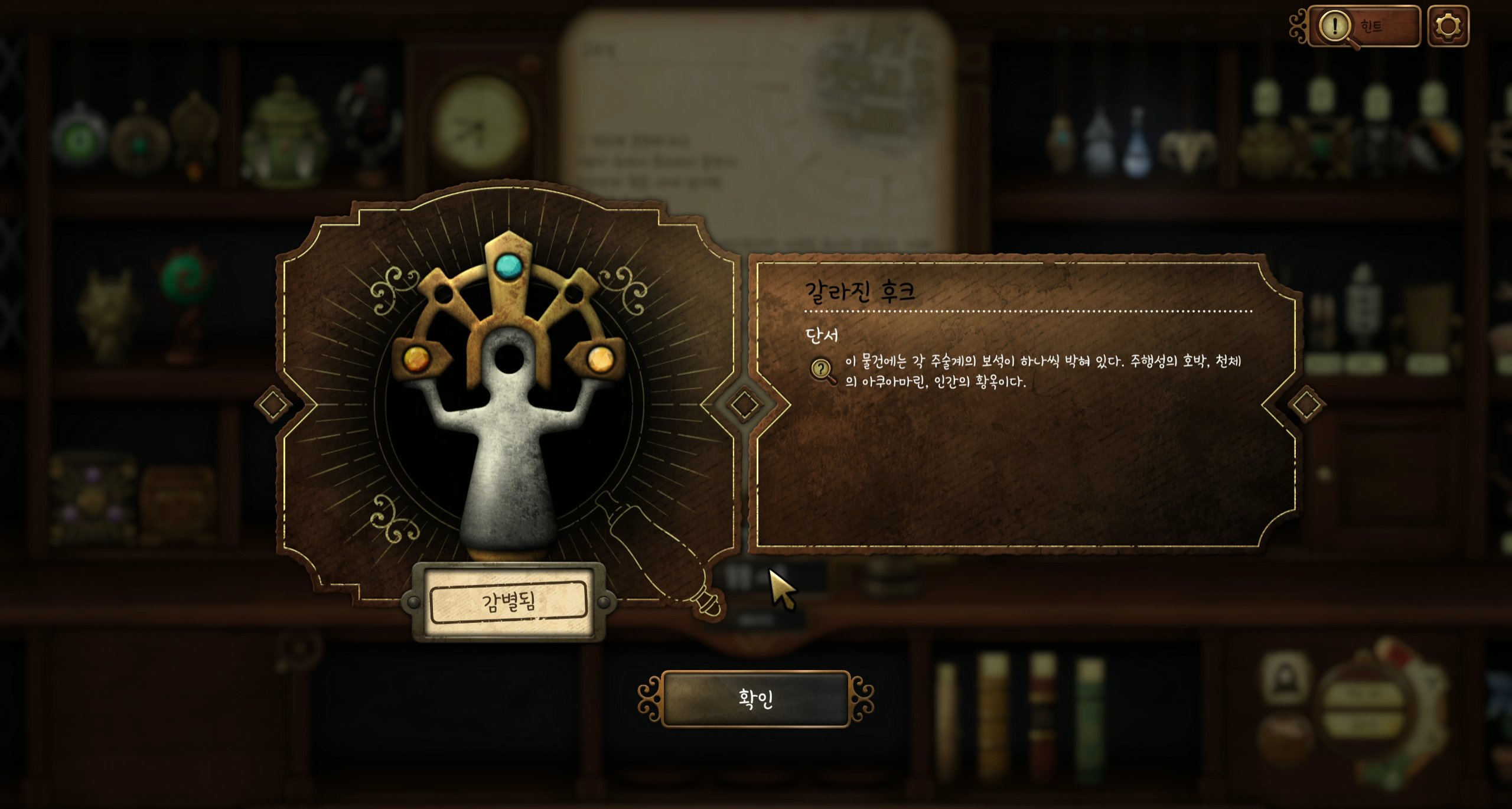 지하 묘지를 조사하겠다면서 섹스트럼을 찾습니다. 광기로부터 보호한다는 이 골동품은 광기와 보호의 문양이 새겨져 있습니다.