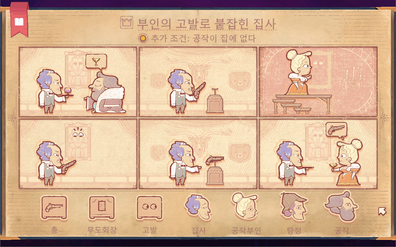 8-4 시트를 사용합니다. 고발자를 공작으로 하면 공작이 집사를 해고하여 도전과제가 해금되지 않습니다.