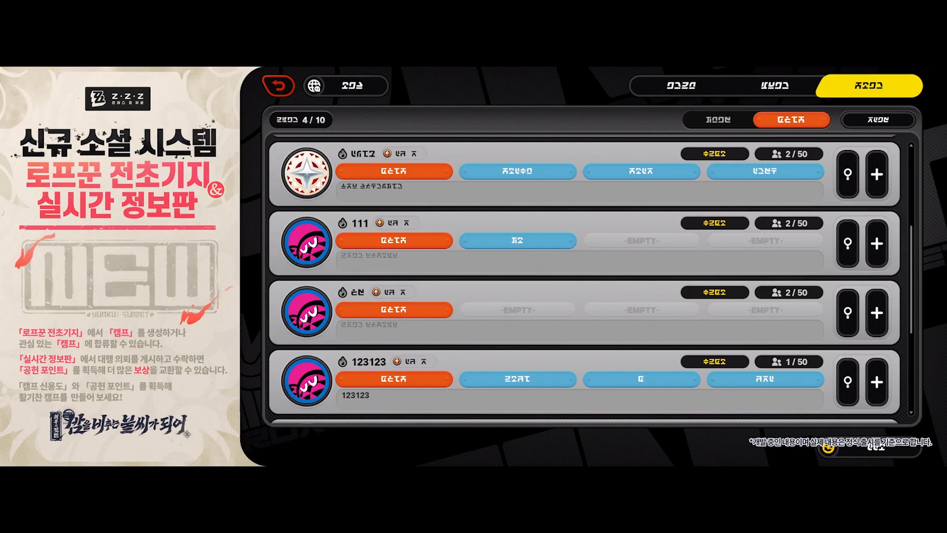 - 캠프: 길드와 유사한 시스템