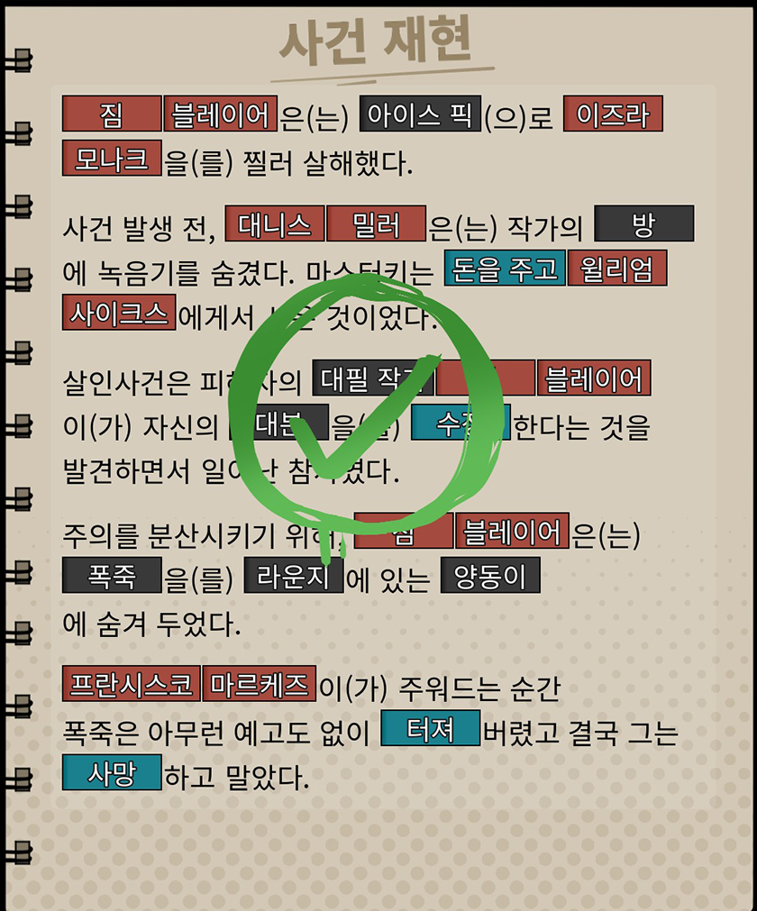은폐된 살인의 진실들 사건 키워드 공략 정답지 2